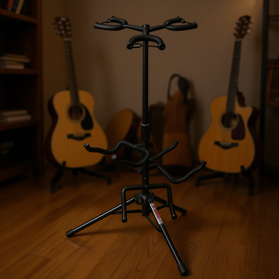 DB Triple Guitar Stand 30-38.5 Inch Adjustable Tripod Holder for Acoustic Electric Guitars Foldable Metal Support