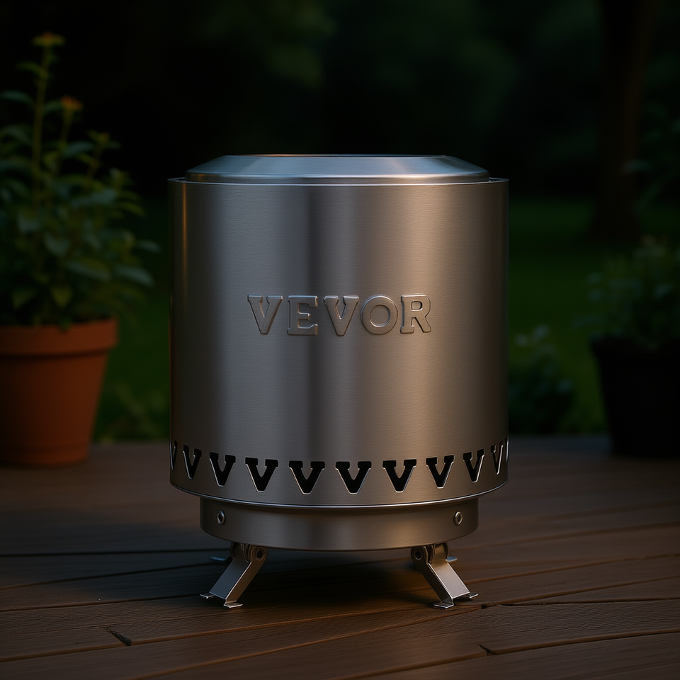 เตาผิงตั้งโต๊ะสแตนเลส Vevor ขนาด 6 นิ้ว สำหรับใช้ในร่มและกลางแจ้ง เผาไหม้ด้วยไม้ เตาผิงแบบพกพาทันสมัย