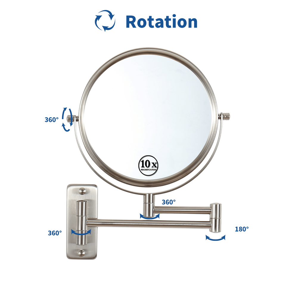 DB กระจกโต๊ะเครื่องแป้งติดผนังขนาด8นิ้ว, 1X 10X ขยาย360 ° หมุนได้พร้อมแขนยืด