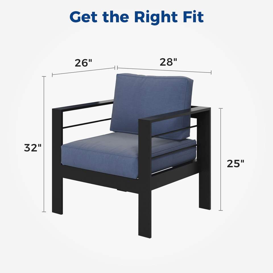DB โซฟา2-Pcs อลูมิเนียมสำหรับพักผ่อนกลางแจ้ง, โซฟากลางแจ้งทำจากโลหะทนทุกสภาพอากาศพร้อมเบาะสีน้ำเงินหนาและนุ่มขนาด5นิ้ว