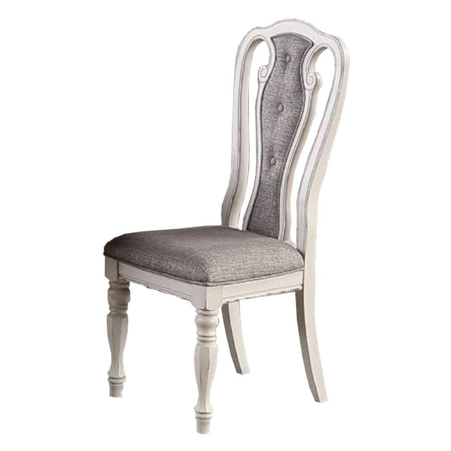 ชุดเก้าอี้รับประทานอาหารสีขาวโบราณ DB จำนวน 2 ตัว หุ้มด้วยหนัง PU สีเทา ดีไซน์พนักพิงแบบ Tufted พร้อมเบาะรองนั่ง สำหรับห้องรับประทานอาหาร