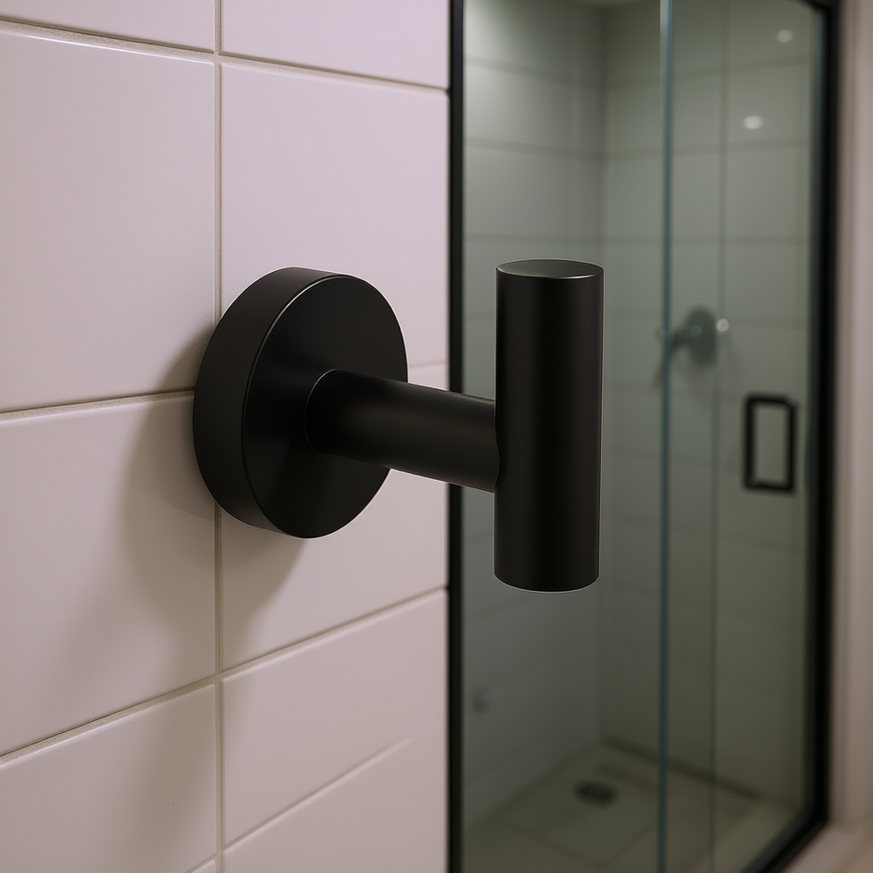 ตะขอแขวนผ้าสแตนเลสแบบติดผนัง สีดำด้าน ไม่ต้องเจาะ สำหรับห้องน้ำ ดีไซน์มินิมอล