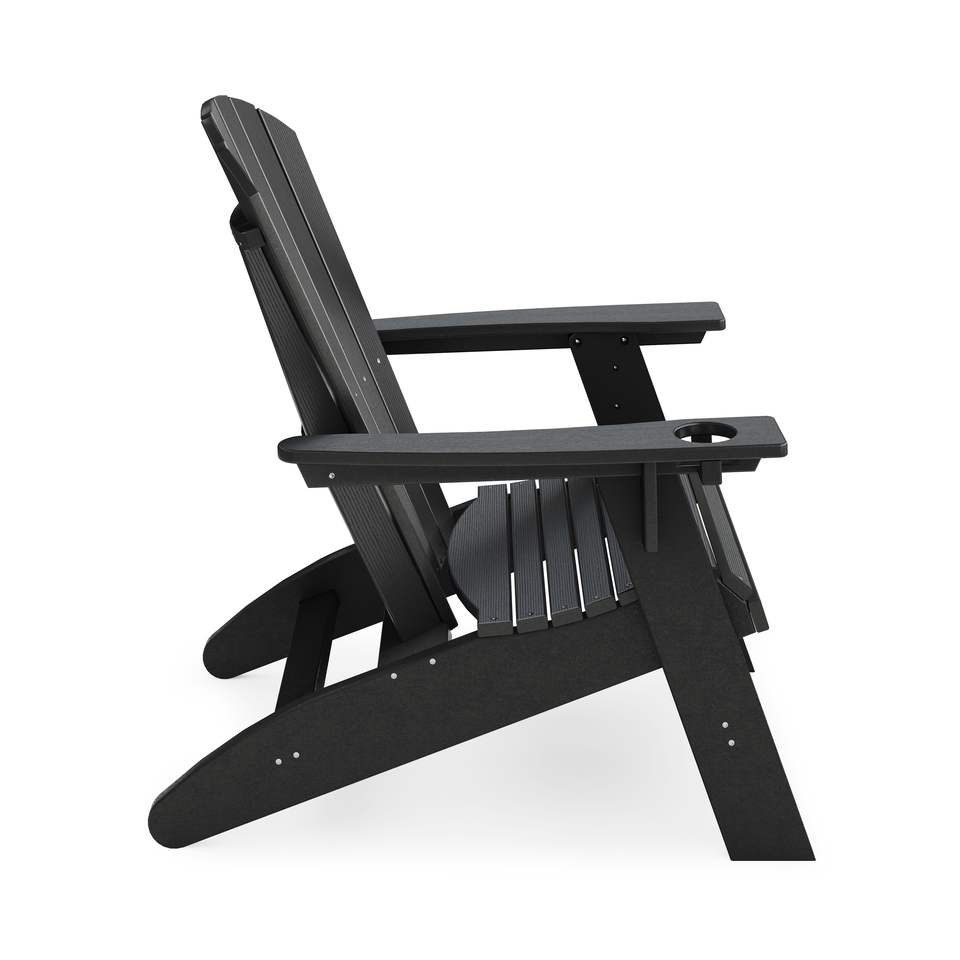 เก้าอี้พับสีดำ dB adirondack ไม้แปรรูปโพลีเอทิลีนที่แข็งแรงสำหรับพักผ่อนในสวนริมสระน้ำสำหรับกิจกรรมกลางแจ้ง