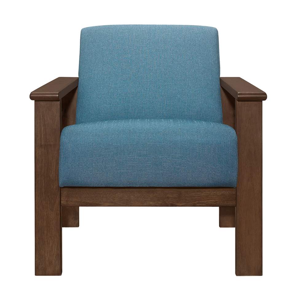 เก้าอี้เน้นเสียงผ้าสีฟ้าพร้อมไม้วอลนัททนทานเฟอร์นิเจอร์บ้านทันสมัยเบาะที่นั่งและหลังสำหรับบ้านสำนักงาน