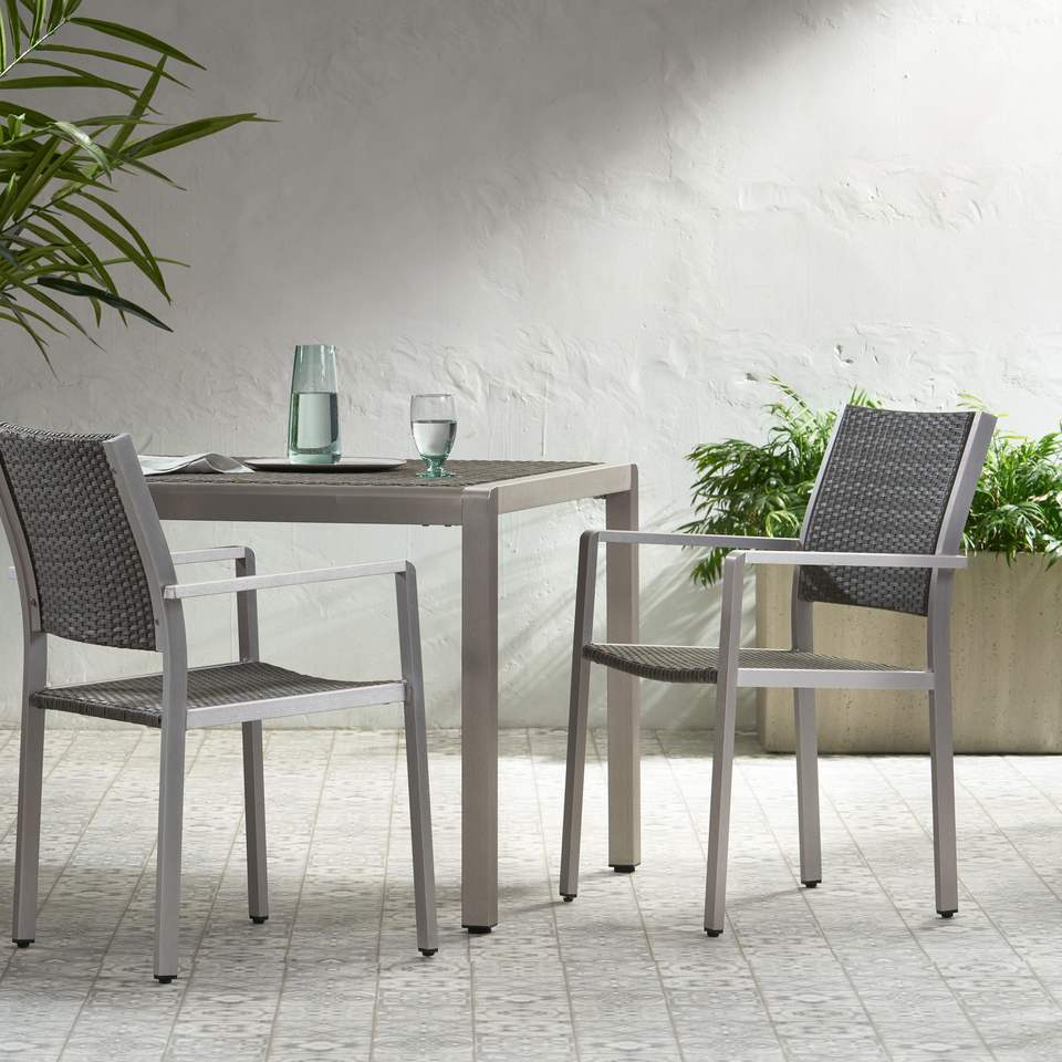 DB Cape Coral ชุดเก้าอี้รับประทานอาหารกลางแจ้งแบบพับเก็บได้2-Pcs กรอบอลูมิเนียมดีไซน์เหล็กและโลหะ
