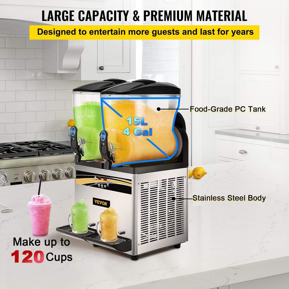 เครื่องทำมาร์การิต้า DB Commercial 1000W ความจุ 15 ลิตร x 2 ถัง เครื่องทำน้ำแข็งปั่น เครื่องทำสมูทตี้แช่แข็ง สำหรับซูเปอร์มาร์เก็ต บาร์ และใช้ในบ้าน