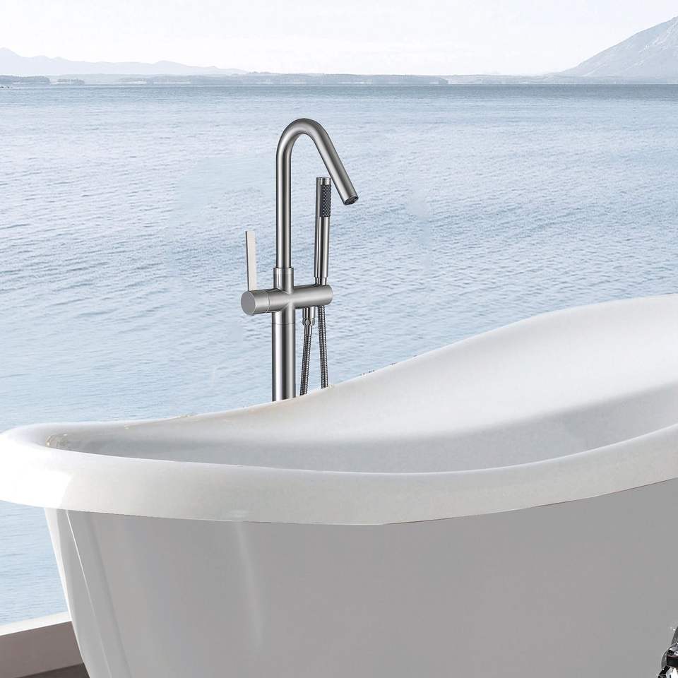 DB ก๊อกอ่างอาบน้ำอิสระแบบร่วมสมัยที่หรูหราพร้อมฝักบัวขัดเงาลายสเปรย์แบบนุ่มสำหรับใช้ในอพาร์ตเมนต์
