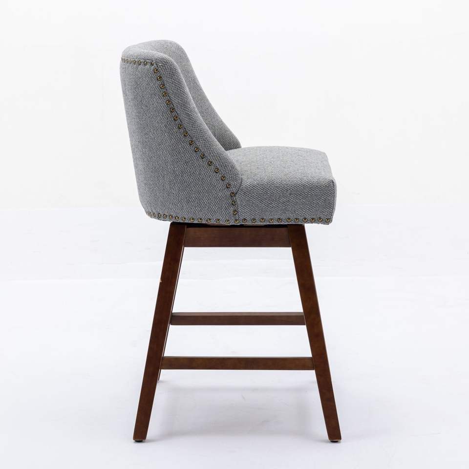 ชุดเก้าอี้บาร์หมุนได้2ชิ้นทำจากผ้าสีเทาความสูง26นิ้วสำหรับห้องครัวห้องรับประทานอาหาร