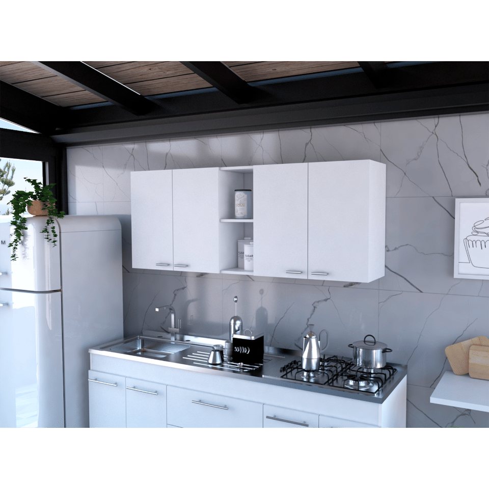 DB DEPOT E-SHOP Olimpo 150 White Kitchen Cabinet Wall-mounted Double Door Design with Two External and Two Interior Shelves