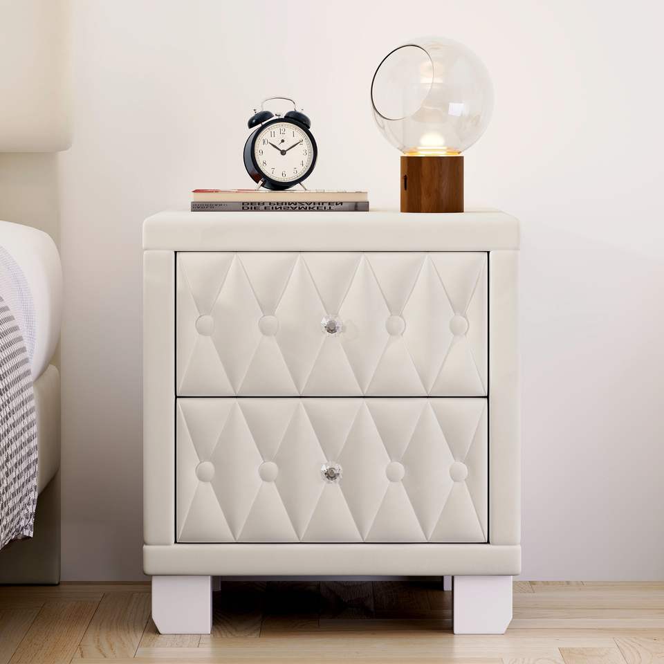 DB โต๊ะข้างเตียงอัจฉริยะสุดหรู, โต๊ะข้างเตียง2ลิ้นชักมือจับคริสตัลสีเบจ