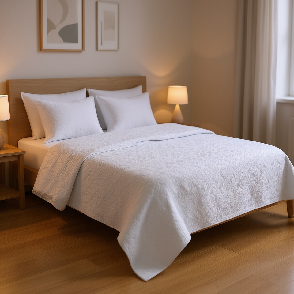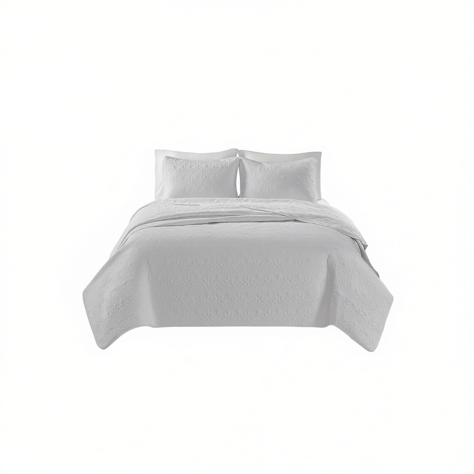 Db Four Seasons Reversible Quilt Set White King Cal King Size Embroidered Microfiber Fill Washable Bedding