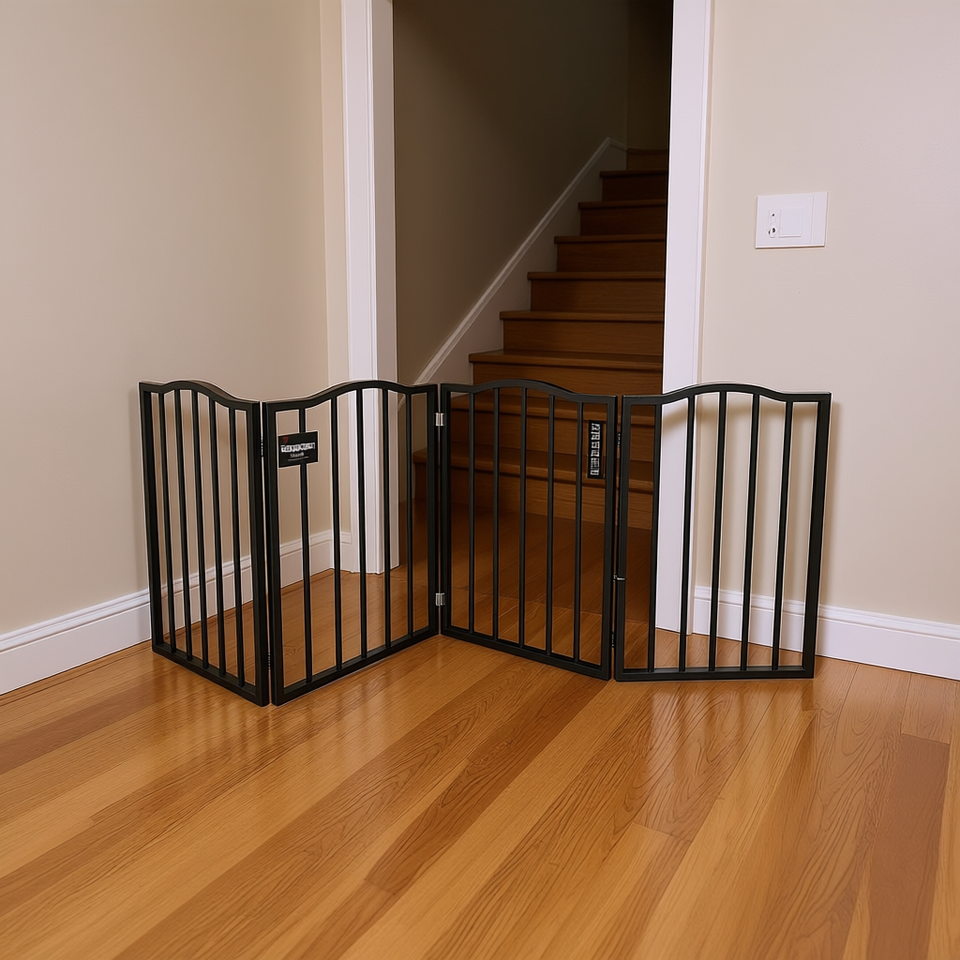 ประตูรั้วกั้นสัตว์เลี้ยงแบบพับได้ สแตนเลส สำหรับทางเข้าประตู ใช้ภายในบ้าน รูปทรงสี่เหลี่ยมผืนผ้า สไตล์ไม้