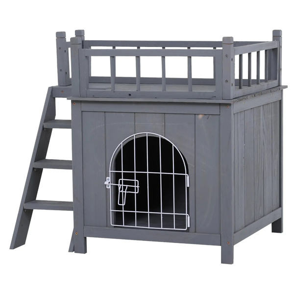 บ้านแมวไม้หรู 2 ชั้น รุ่น DB Grey ดีไซน์ทันสมัยสำหรับกลางแจ้ง พร้อมประตูลวดล็อคได้ ลายสัตว์แข็งแรง
