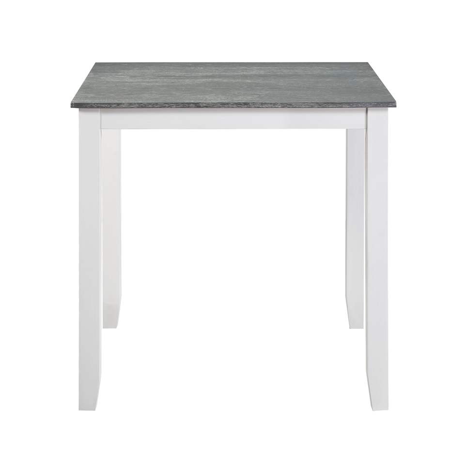 DB เฟอร์นิเจอร์รับประทานอาหารแบบลำลองสำหรับบ้าน5ชิ้นชุดเคาน์เตอร์ความสูงของโต๊ะผ้าสีเทาขาวหุ้มด้วยเก้าอี้ไม้4ตัว