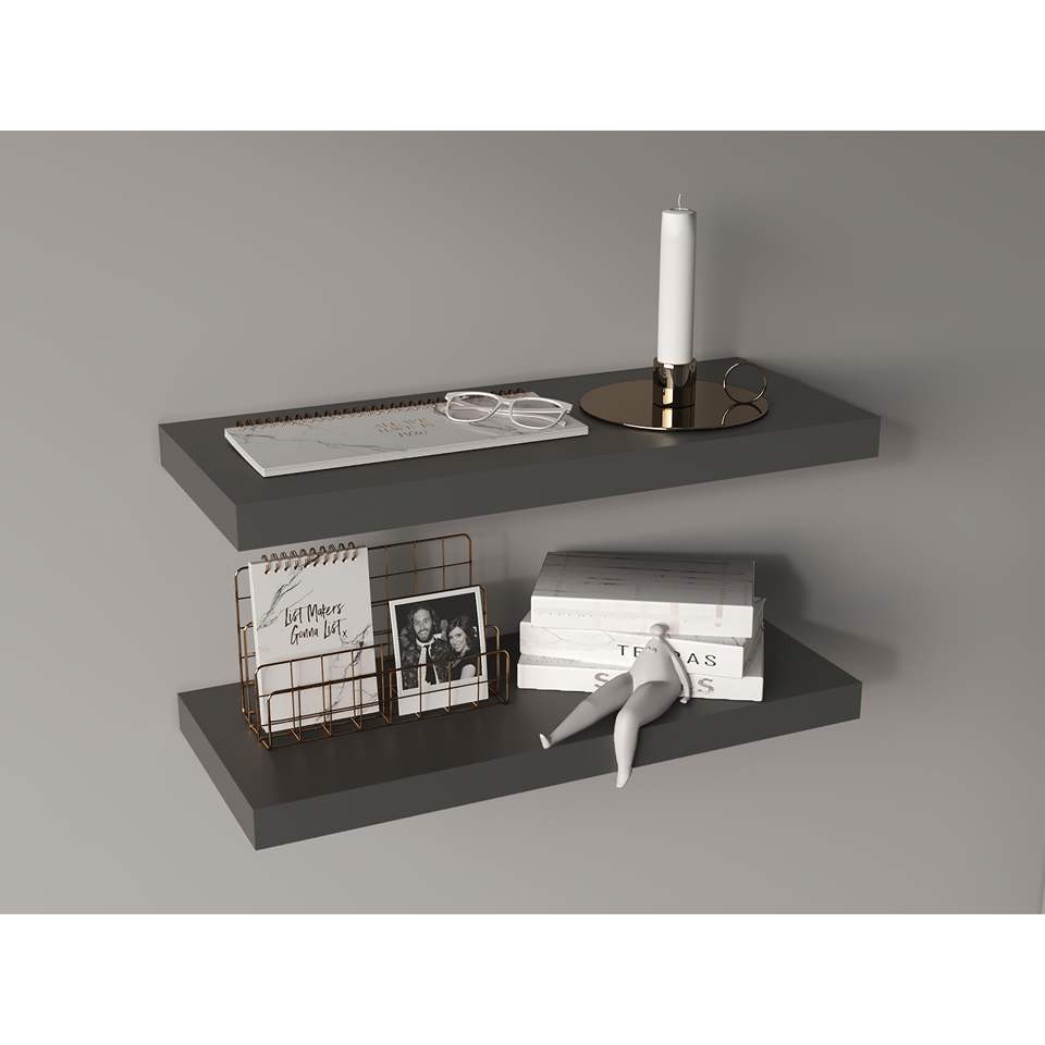 DB ชั้นวางของแบบอุตสาหกรรม1.50 "H ชั้นวางของลอย2ชั้นสีเทาด้านเหล็กทำจากไม้โลหะสำหรับตู้เสื้อผ้าห้องนั่งเล่นผนังห้องน้ำ