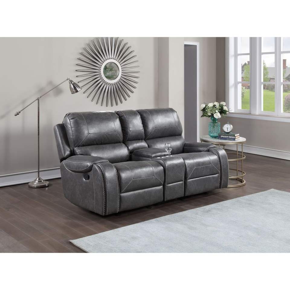 โซฟาปรับเอนแบบแมนนวล DB Keily Modern รุ่น Glider Loveseat สีเทา หนังสังเคราะห์ แบบแยกส่วน โครงยืดได้ พร้อมฟังก์ชั่นนวด สำหรับห้องนั่งเล่น