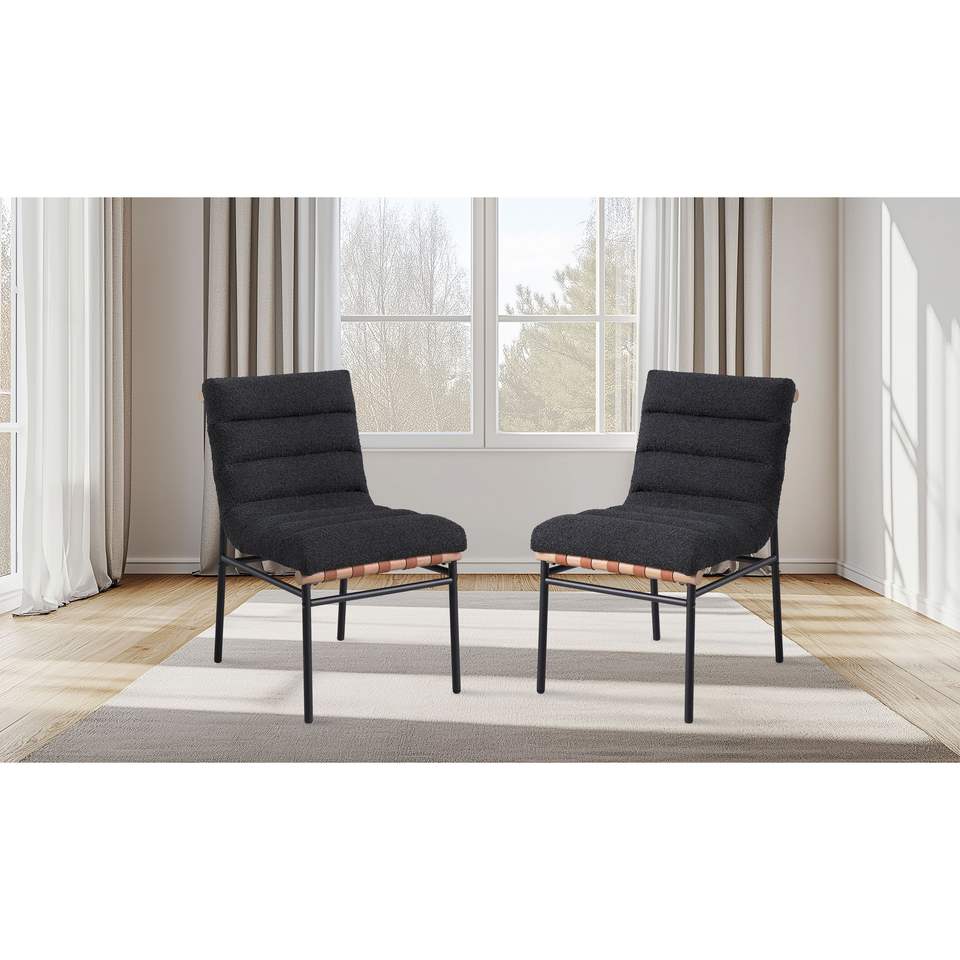DB lahni ชุดเก้าอี้รับประทานอาหาร2ตัวสีดำพร้อมขาเหล็กอ่อนบ้านไร่ดีไซน์ร่วมสมัยสำหรับห้องนั่งเล่นใช้ในบ้าน