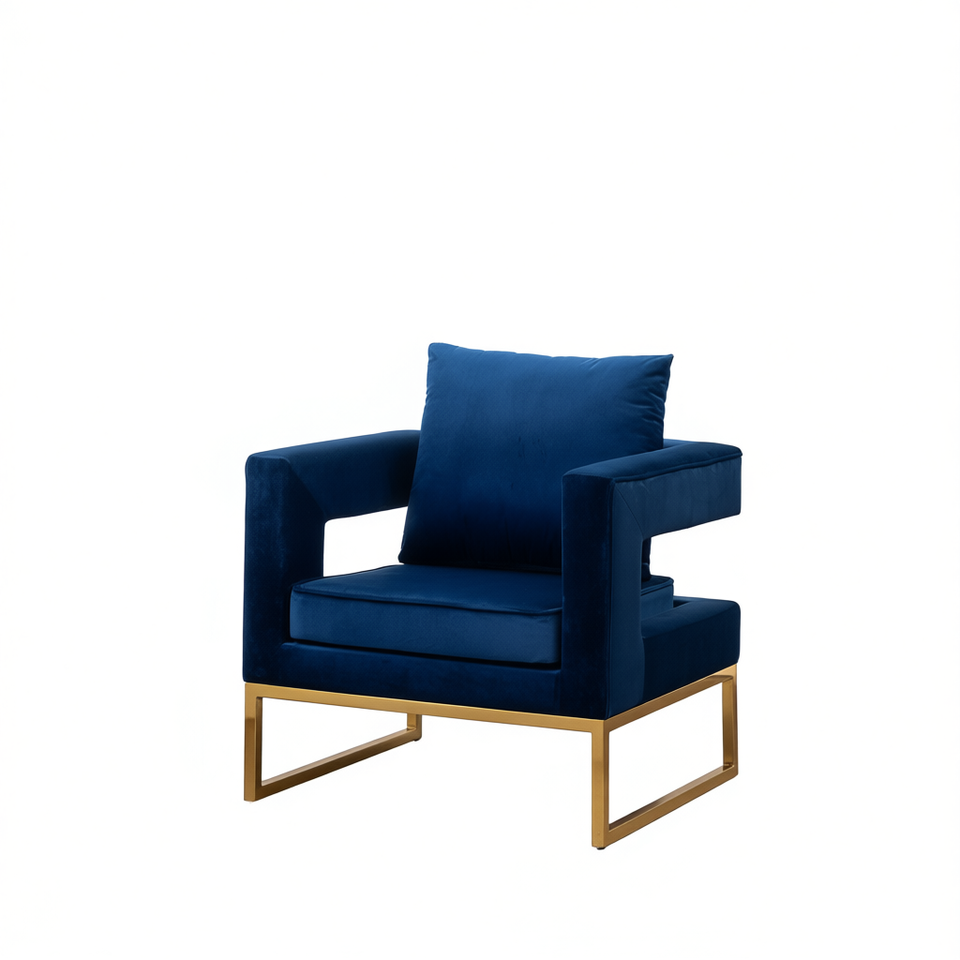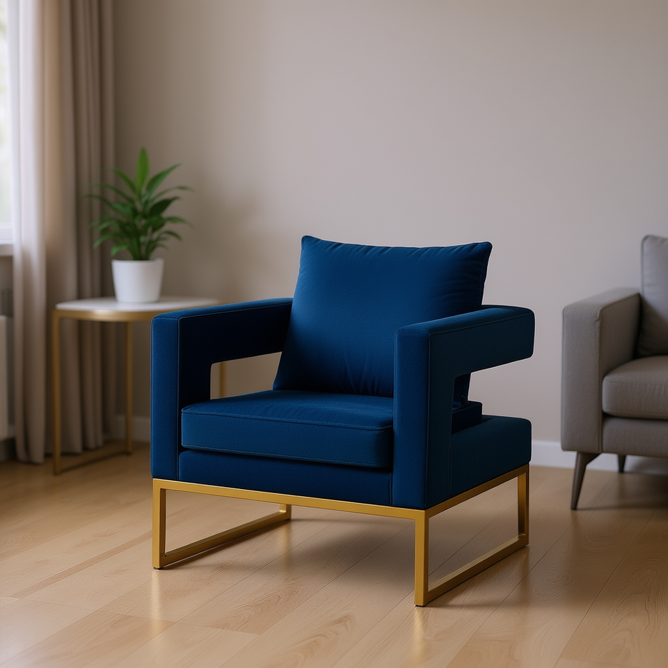 เก้าอี้พักผ่อนดีบี เลโนลา รุ่นร่วมสมัย หุ้มกำมะหยี่สีน้ำเงิน ขาโลหะ เหมาะสำหรับห้องนั่งเล่น