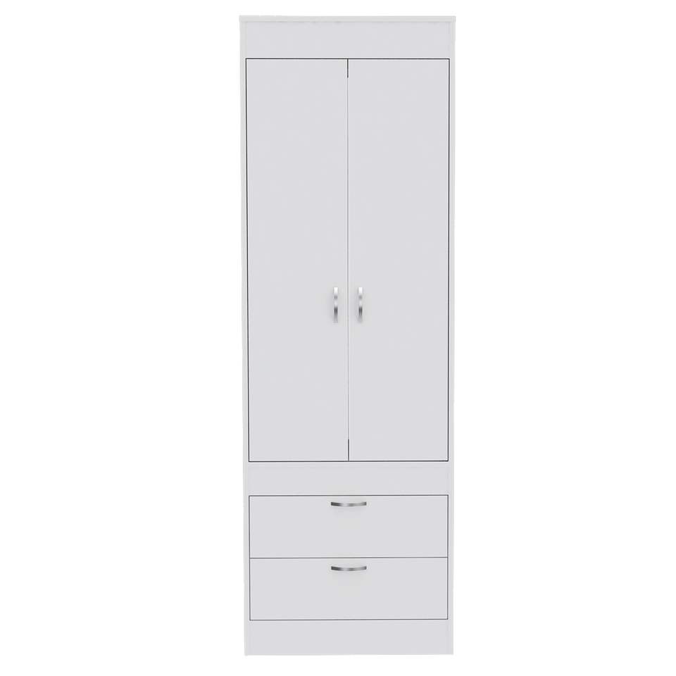 DB Lisboa สองประตูสีขาว armoire Rod ลิ้นชักโลหะสองอันที่จัดระเบียบเสื้อผ้าแบบพับได้สำหรับเฟอร์นิเจอร์บ้านสำหรับอพาร์ทเมนต์