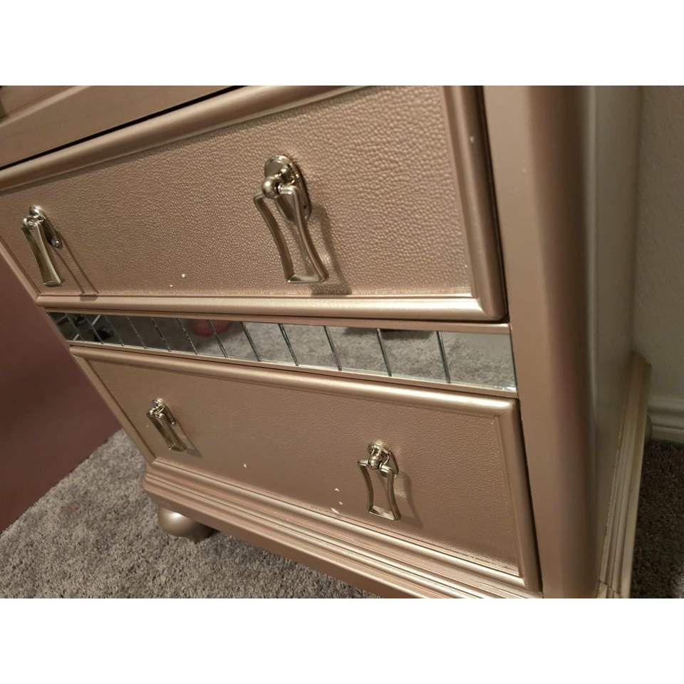 DB Luxury Antique Modern 2-Drawers Rose Gold Wooden Nightstand with Mirror Trim for Bedroom Furniture in Apartments