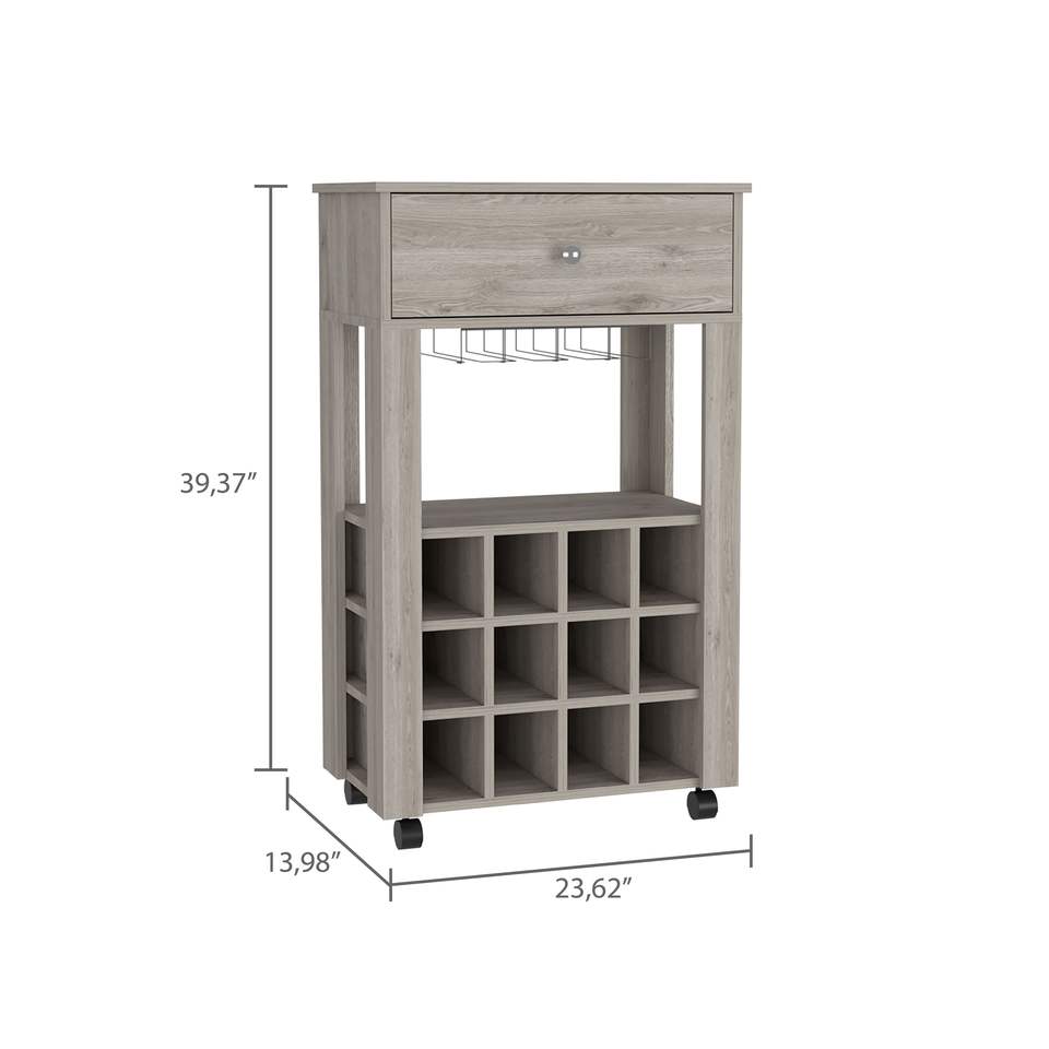 DB MEMPHIS รถเข็นบาร์สีเทาอ่อนพร้อมชั้นวางไวน์ในตัวสิบสองชิ้นและชุดเฟอร์นิเจอร์สี่ขาแบบเปิดหนึ่งชั้น