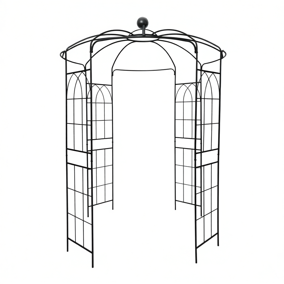 ซุ้มเหล็กตกแต่งสวนรูปทรงกรงนก ขนาดเส้นผ่านศูนย์กลาง 81.3 นิ้ว x สูง 114.2 นิ้ว สไตล์คลาสสิก เคลือบสีดำด้วยวิธีพ่นเคลือบผง