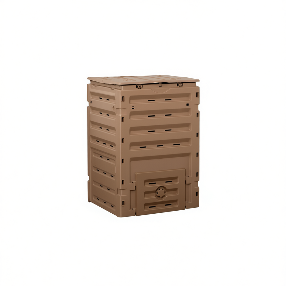 ถังหมักปุ๋ยในสวน DB Modern 450 ลิตร ทรงสี่เหลี่ยม ผลิตจากพลาสติก PP โครงสร้างแบบฝังในตัว สำหรับใช้กลางแจ้งและในบ้าน สีน้ำตาล