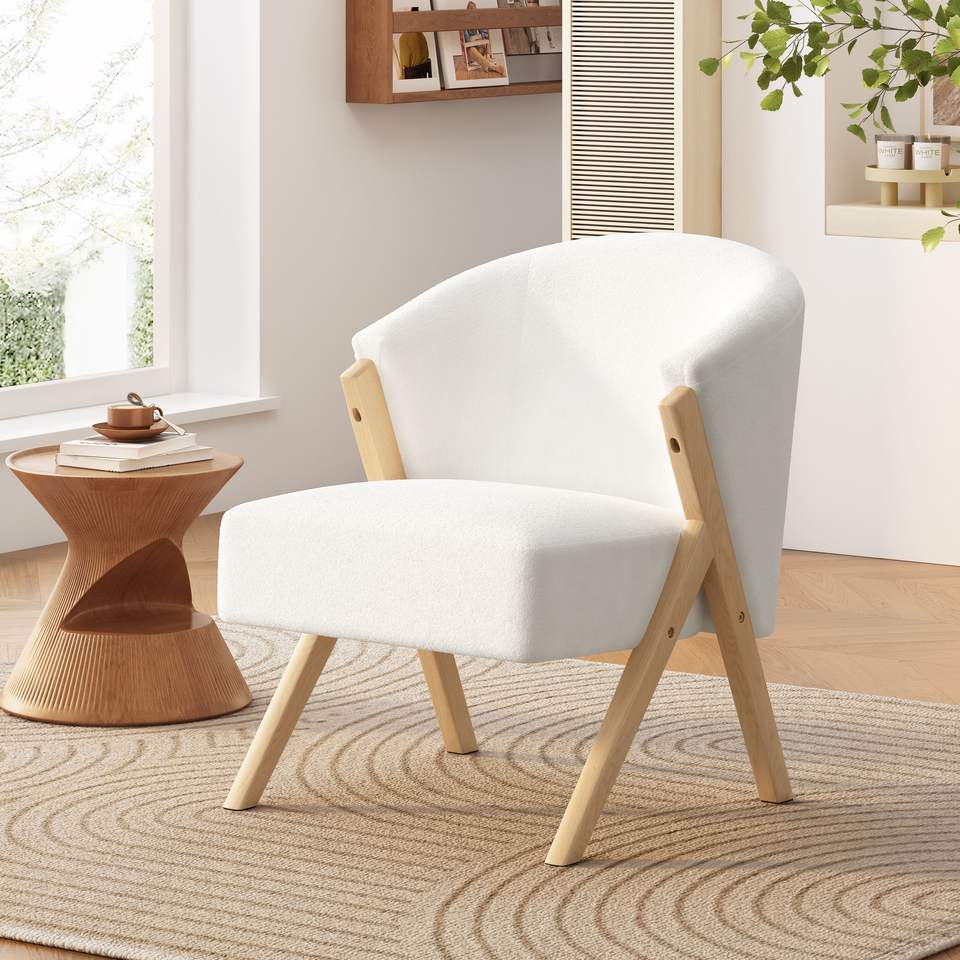 DB เก้าอี้สไตล์โมเดิร์นพร้อมเบาะสีขาวกรอบไม้เนื้อแข็งเก้าอี้เลานจ์เรียบง่ายสำหรับบ้านสำนักงานห้องนั่งเล่นห้องนอน