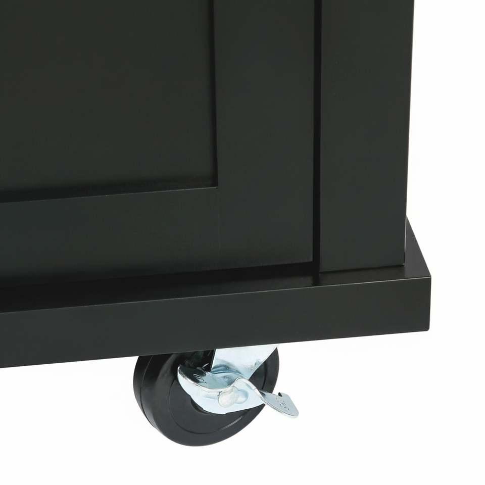 DB รถเข็นห้องครัวดีไซน์ทันสมัยพร้อมแผ่นไม้ยางพาราสำหรับวางบนเคาน์เตอร์ประตูตู้เก็บของภายในชั้นเก็บของ5ล้อเกาะห้องครัว