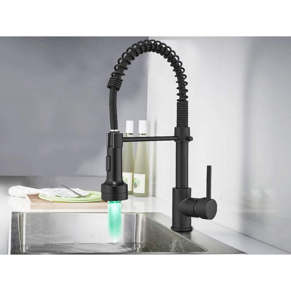 ก๊อกน้ำห้องครัวแบบดึงลงได้ รุ่น DB Modern สีดำด้าน ติดตั้งบนเคาน์เตอร์ 1 รู วาล์วเซรามิก