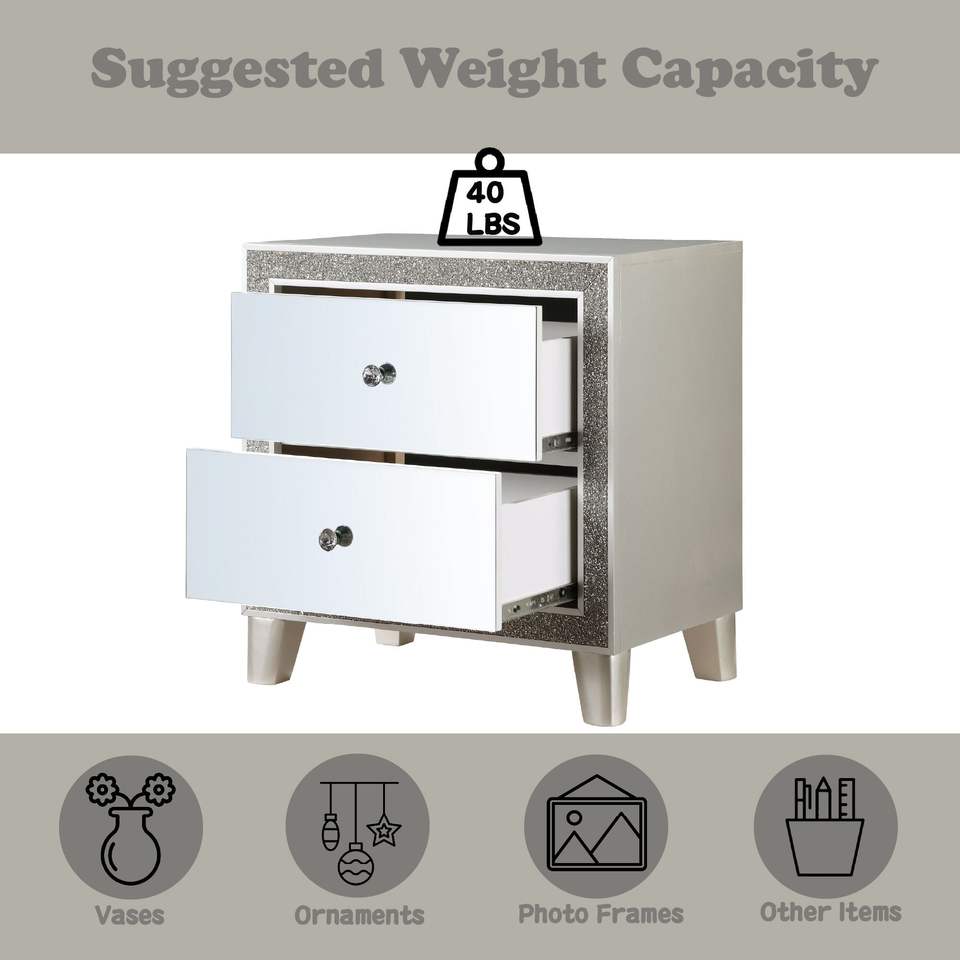 DB Modern European Nightstand with Mirrored & Champagne Finish Solid Wood Bedroom Furniture for Apartment Use