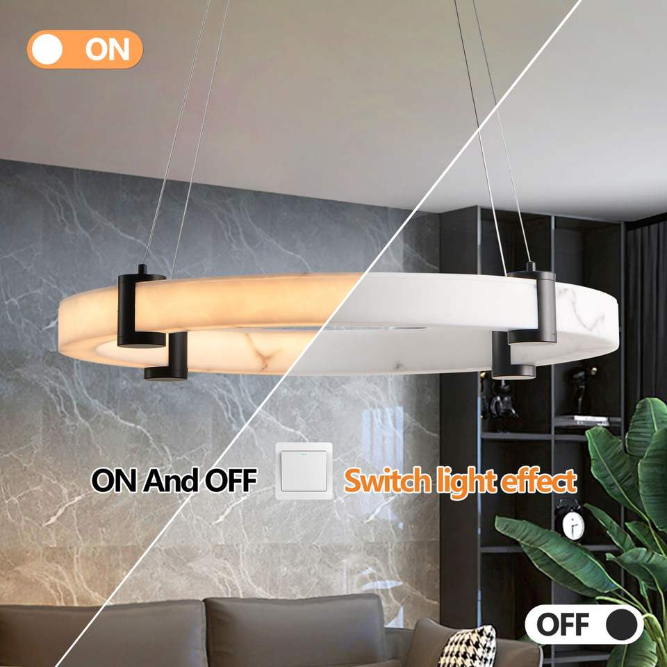 DB โคมไฟระย้า LED ขนาด23.6นิ้ว, โคมระย้าปรับความสูงได้แหวนเรซินเคลือบหินอ่อนเทียมแหล่งจ่ายไฟ AC
