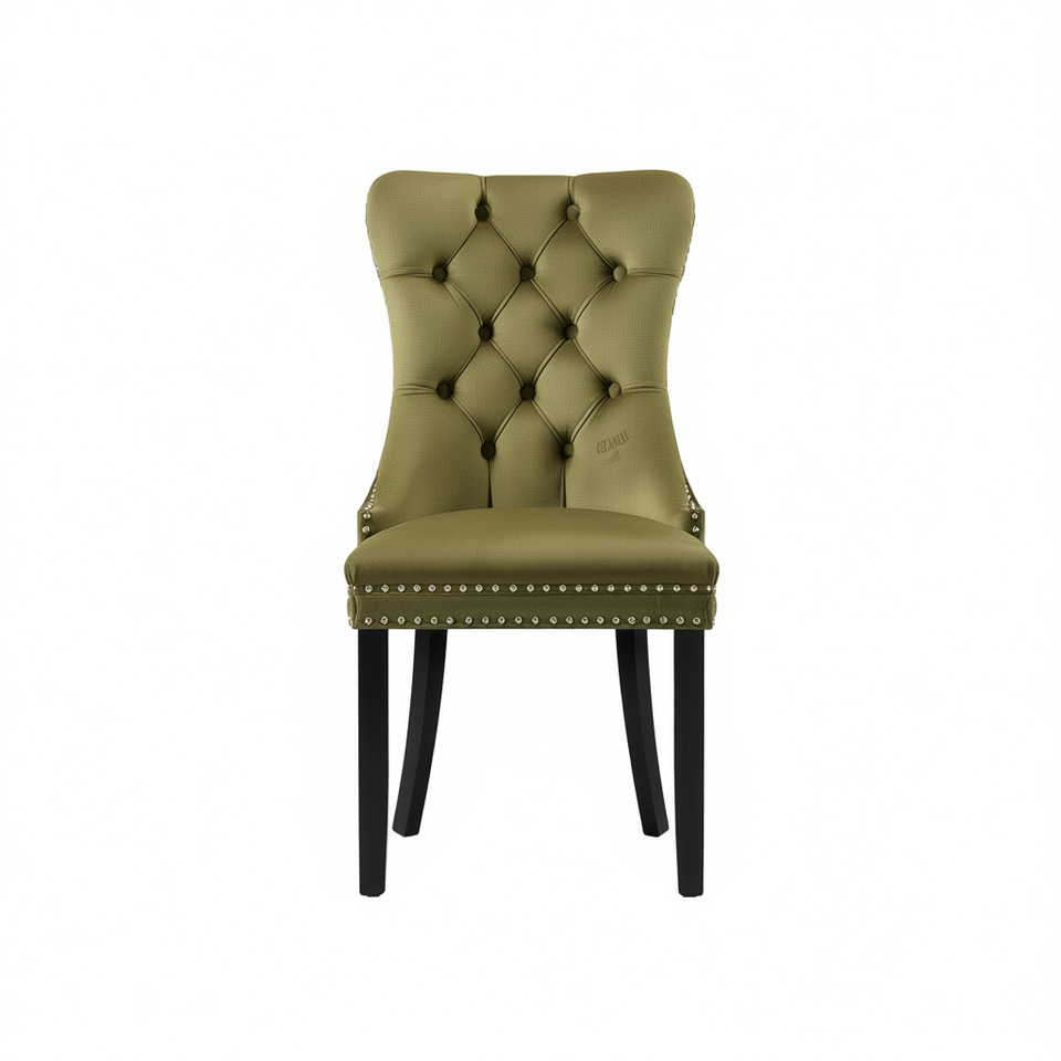 ดีบี นิกกี้ คอลเลคชั่นเก้าอี้รับประทานอาหารหุ้มกำมะหยี่ทันสมัย ขาไม้เนื้อแข็ง ตกแต่งด้วยตะปู