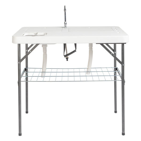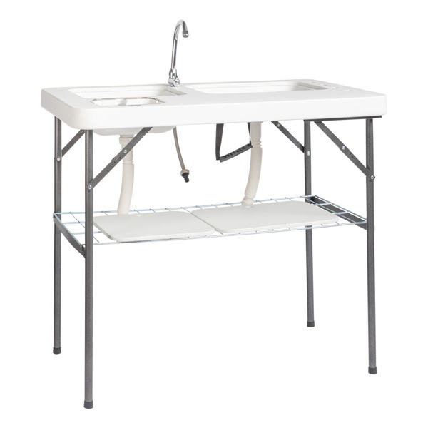โต๊ะครัวแคมป์ปิ้งกลางแจ้ง DB ขนาด 101x65.5x92 ซม. พับได้ ทำจาก HDPE พร้อมอ่างล้างจานและชั้นวาง สำหรับตกปลาและปิกนิก
