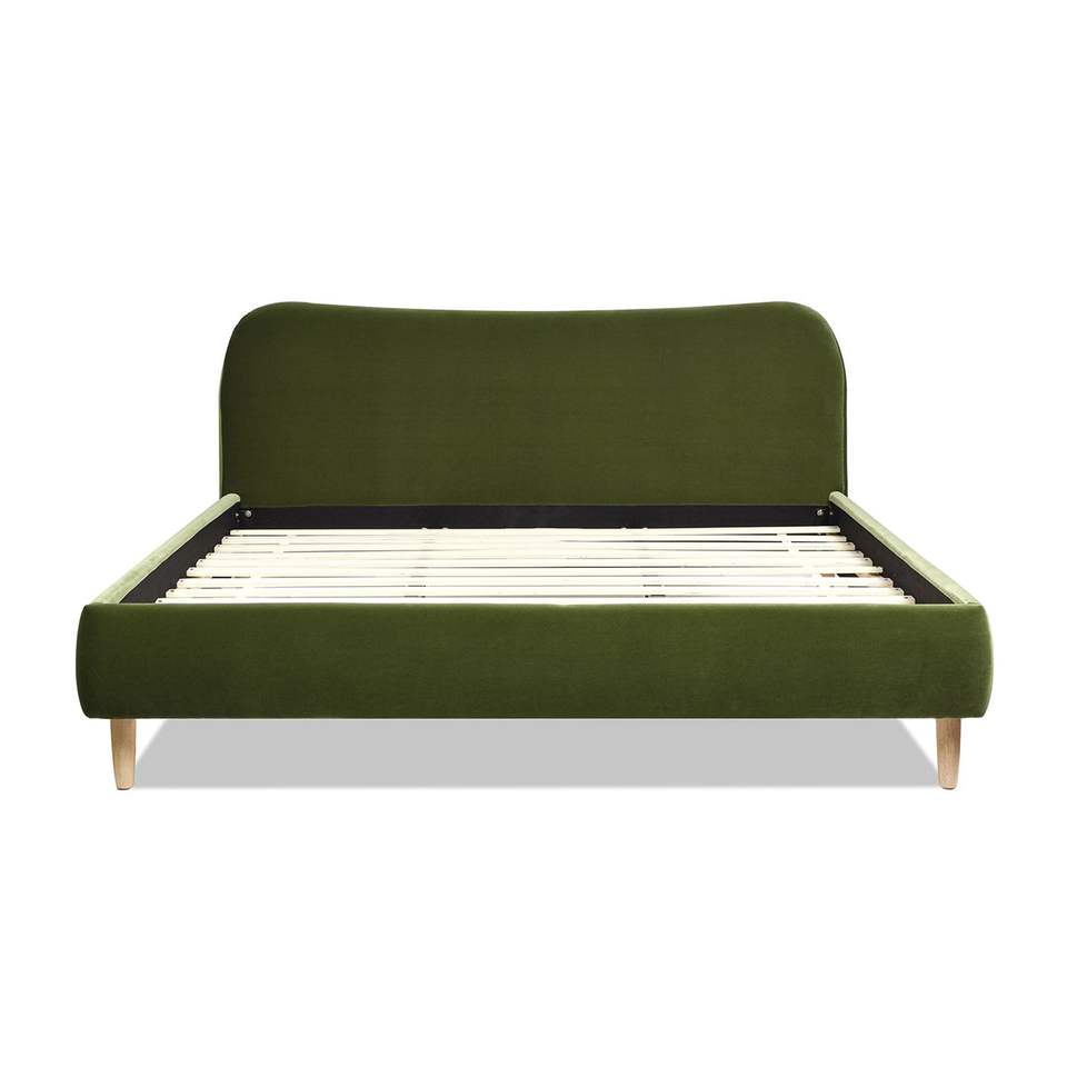 เตียงไม้หุ้มกำมะหยี่ขนาดคิงไซส์ของโรมันหัวเตียงโค้งสีเขียวมะกอก dB โรมัน