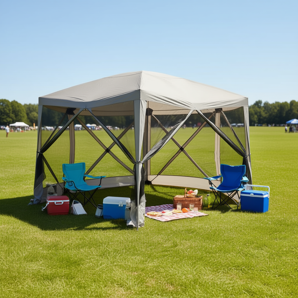 DB Pop Up Party Tent 5m Hexagon Oxford Polyester Foldable Portable Outdoor Event Shelter Aluminum Frame Waterproof