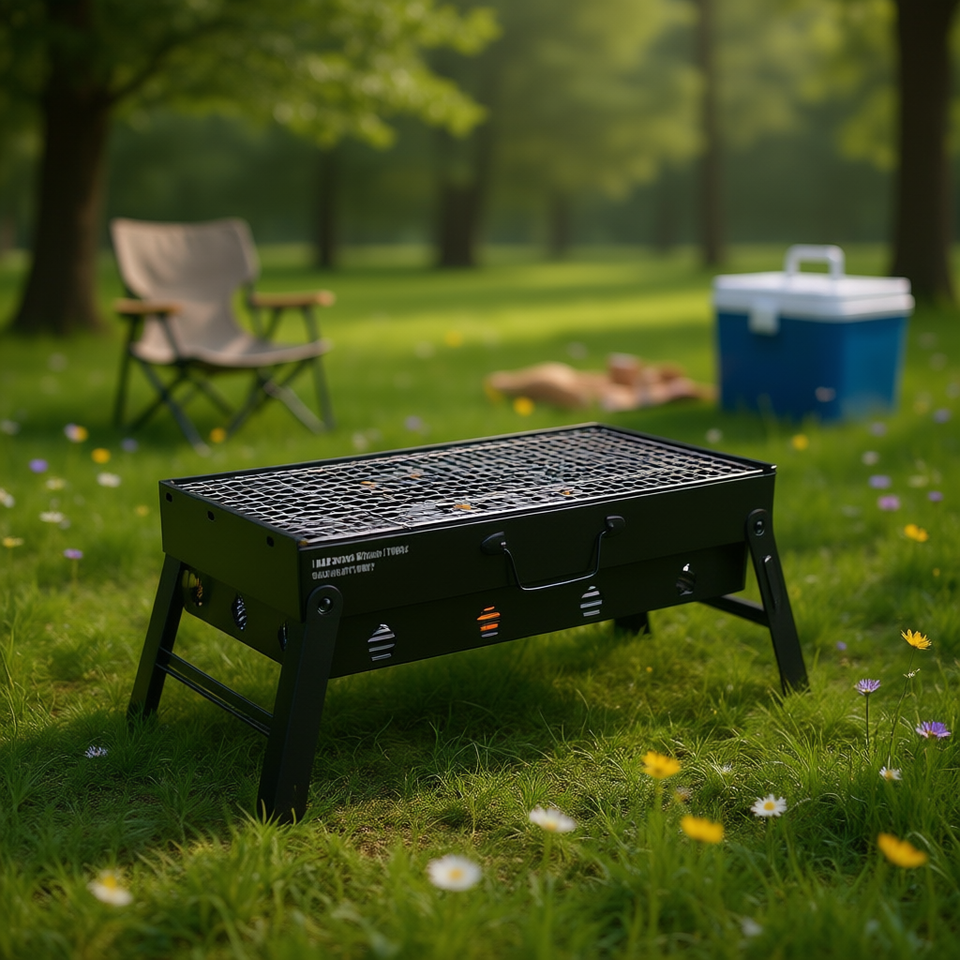 เตาถ่านพกพาแบบพับได้ รุ่น D0100XTM99Y สีดำ สำหรับตั้งแคมป์ ปิกนิก สวน บาร์บีคิว เตาปิ้งย่างกลางแจ้ง