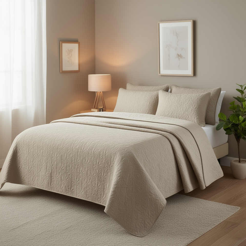ชุดผ้าห่มดีบี ควิลท์ ลายดอกไม้สีกากี แบบสองด้าน ขนาดควีนไซส์ ผ้าฝ้ายเนื้อนุ่ม ชุดเครื่องนอนคลาสสิกสำหรับห้องนอน ใช้ได้ทุกฤดู