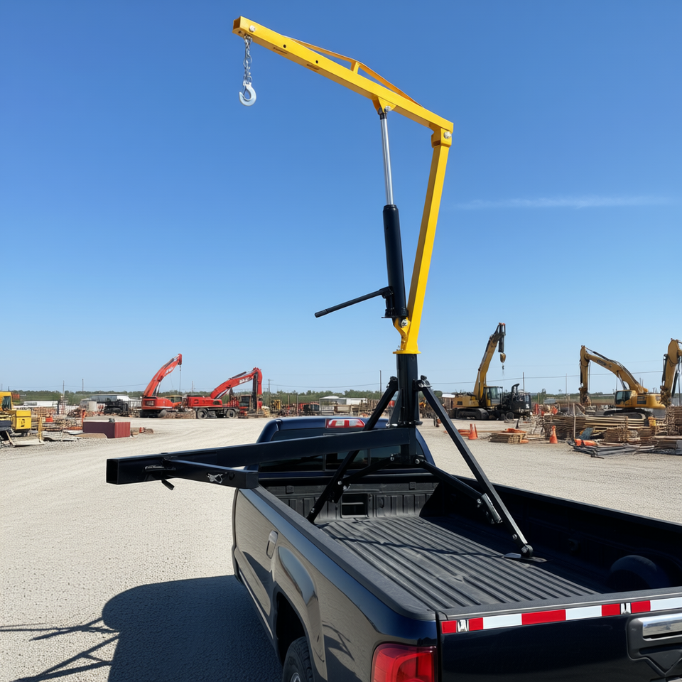 เครนติดรถกระบะแบบหมุนได้ ระบบไฮดรอลิก รับน้ำหนัก 1000 ปอนด์ สีเหลือง พร้อมระบบไฮดรอลิก