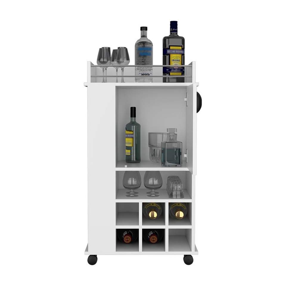 DB Reese รถเข็นบาร์สีขาวมีล้อแบบประตูเดียวและหกช่องสำหรับใส่ไวน์สำหรับชุดบาร์ในบ้าน