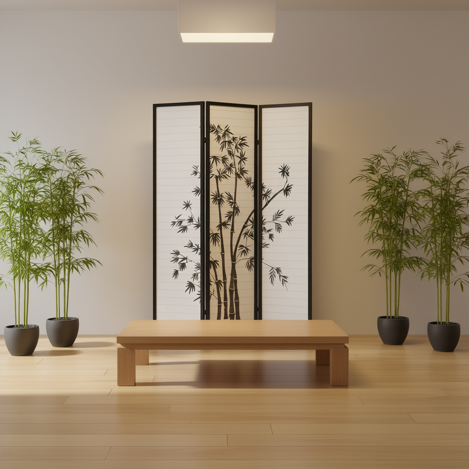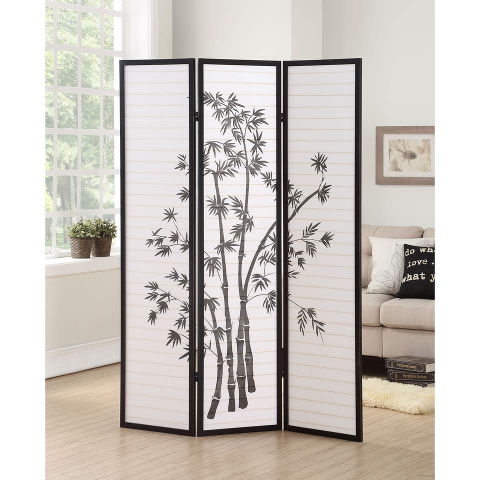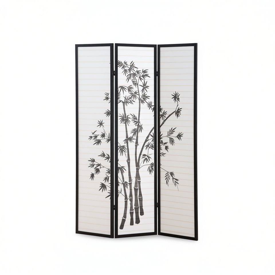ฉากกั้นห้องแบบพับได้ 3 บาน รุ่น DB Roundhill สีดำ ลายกระดาษโปร่งแสง สไตล์โอเรียนทัล