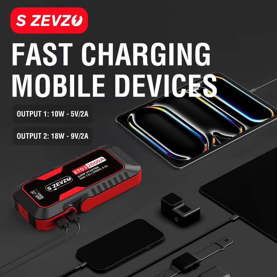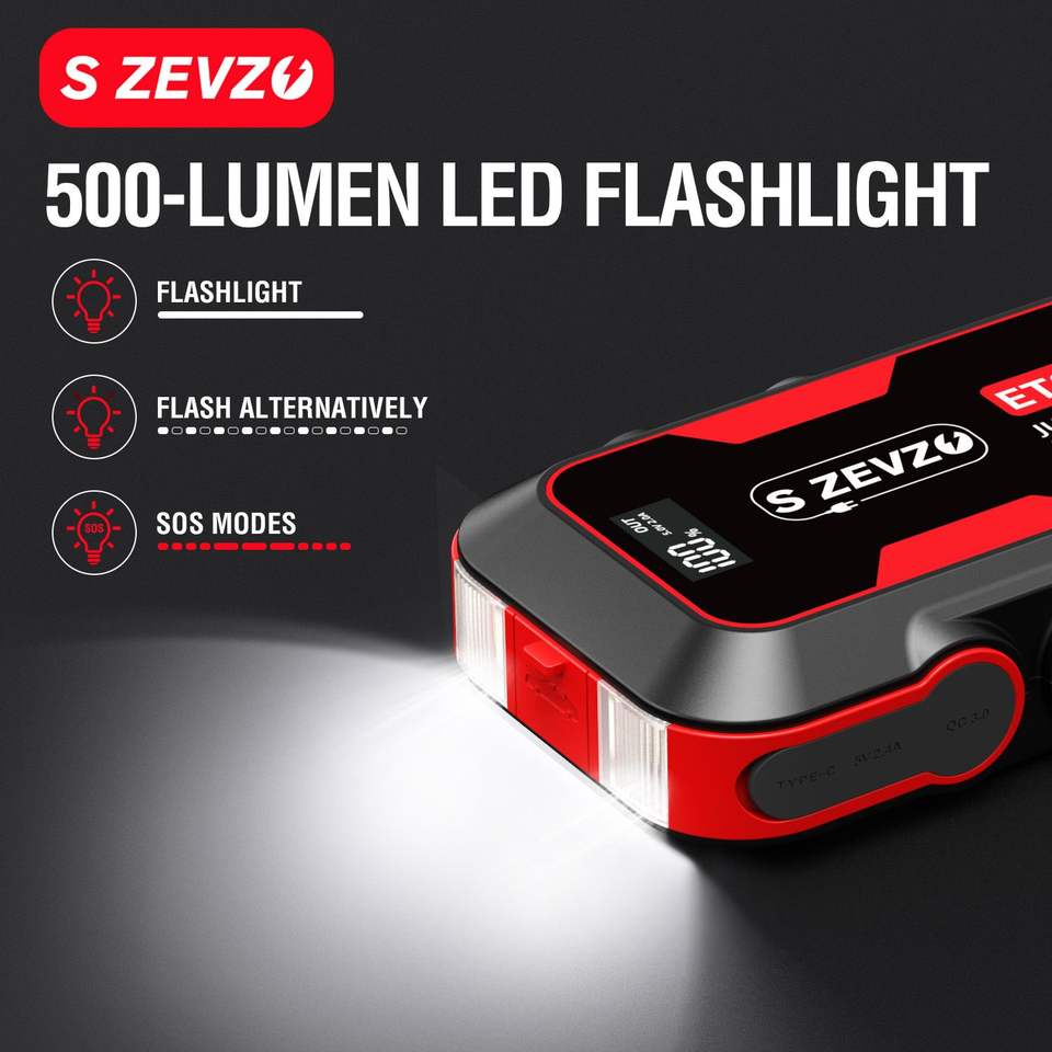 เครื่องจั๊มสตาร์ท S ZEVZO ET03 2000A แบตเตอรี่สำรองแบบพกพา 12V สำหรับเครื่องยนต์เบนซิน 7.5 ลิตร และดีเซล 6.5 ลิตร สำหรับรถบรรทุก