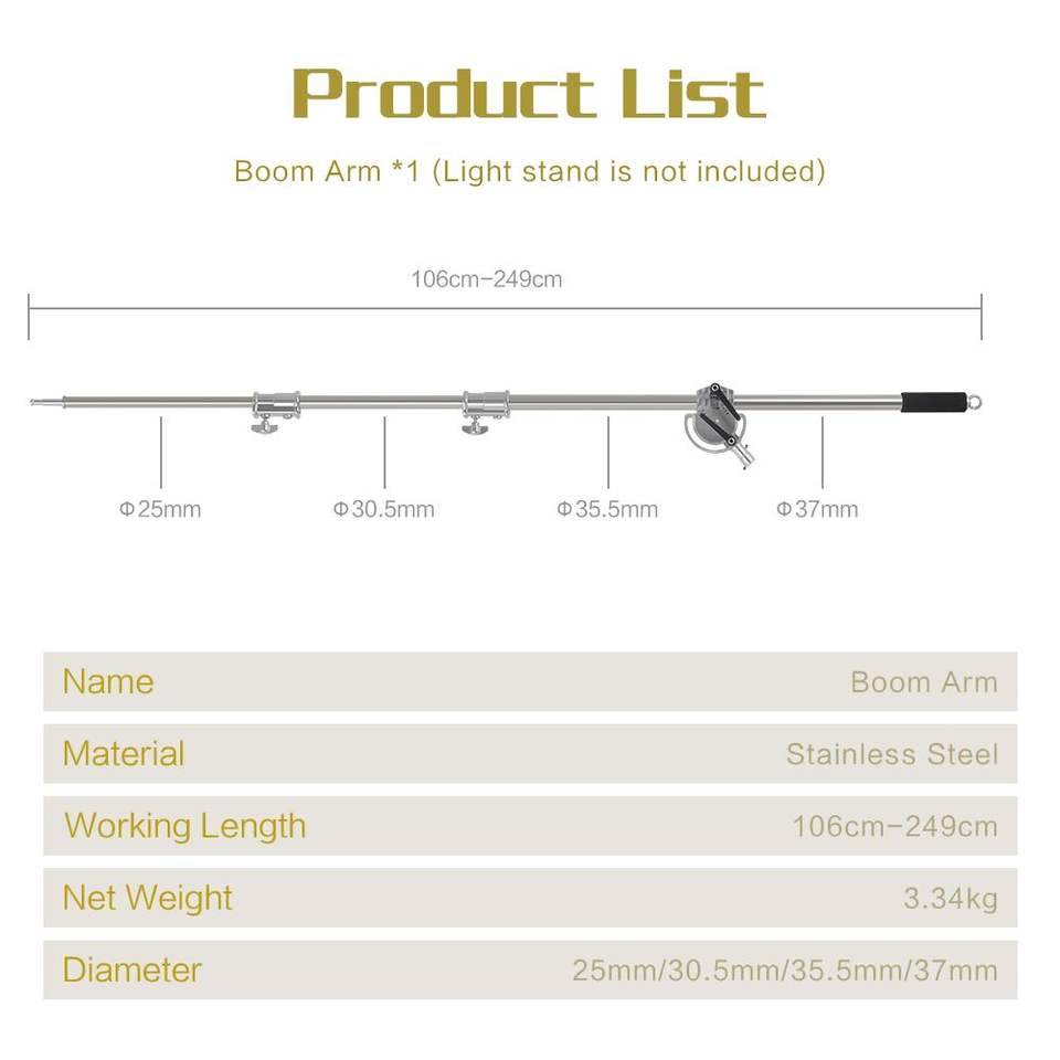 ดีบี เอช ชุดอุปกรณ์เสริมเหล็กสแตนเลสแบบก้านไขว้ 106 ซม. พร้อมก้านต่อขยาย 249 ซม. สำหรับอุปกรณ์เสริมไฟสตูดิโอถ่ายภาพ