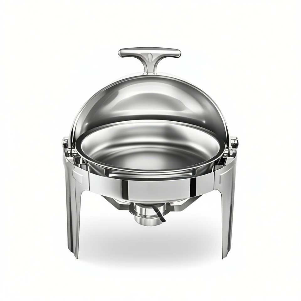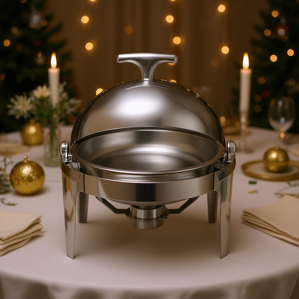 เครื่องอุ่นอาหารสแตนเลสทรงกลม 6 ลิตร ดีไซน์หรูหรา สำหรับงานจัดเลี้ยง