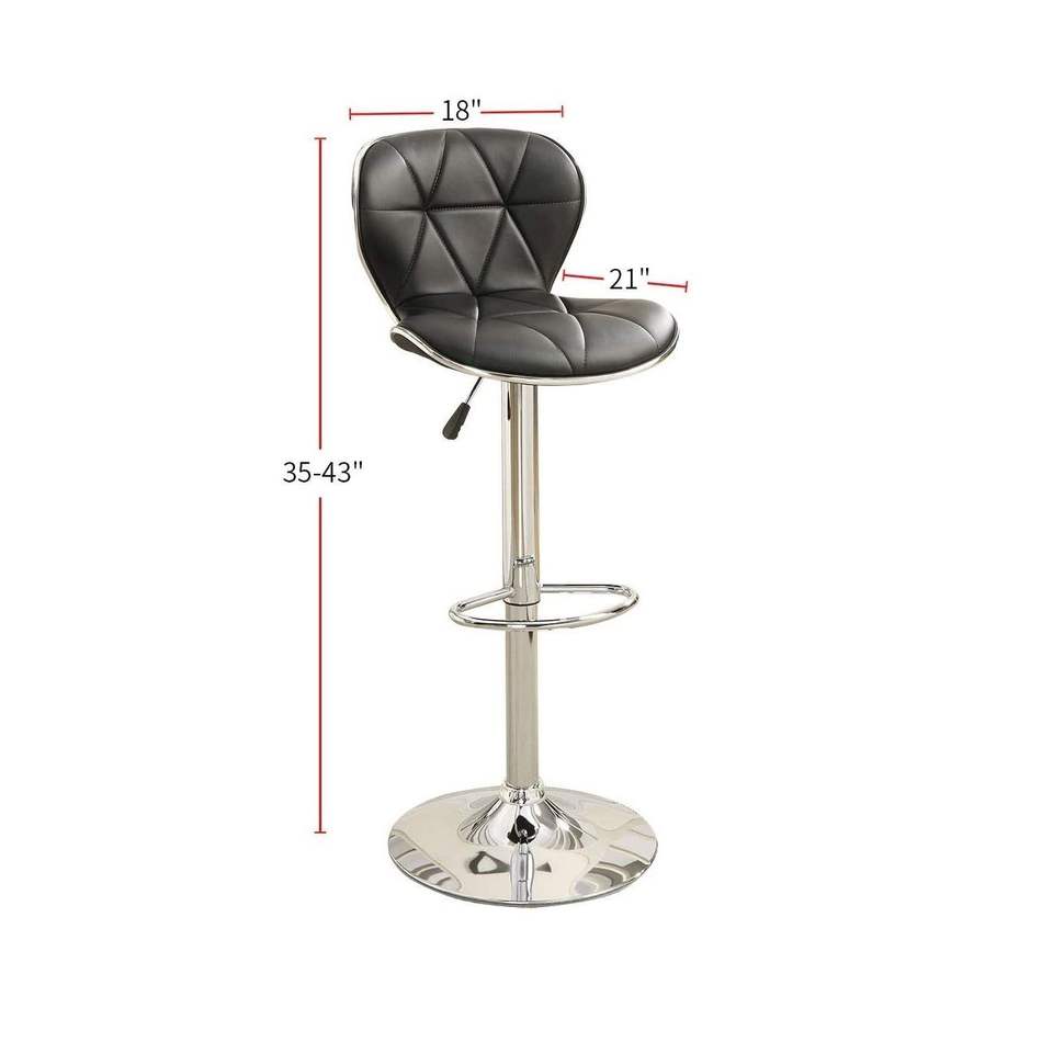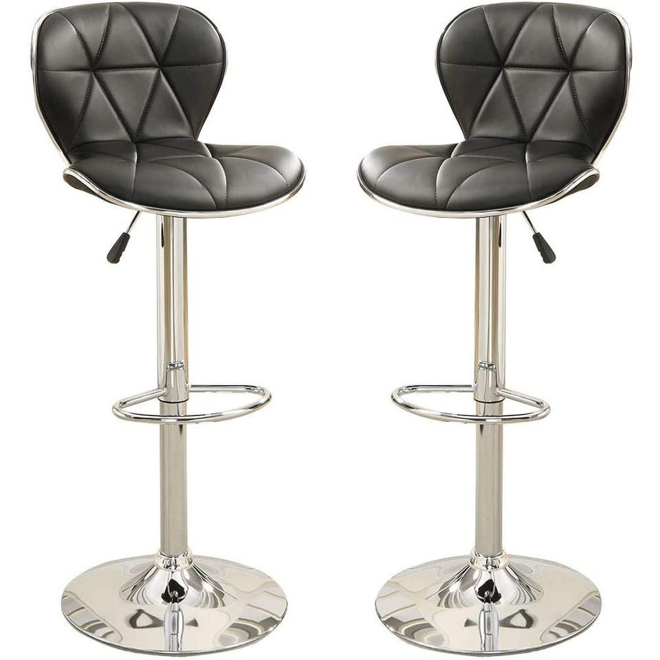 เก้าอี้เคาน์เตอร์หนังเทียมสีดำ2ชิ้นเก้าอี้เกาะในครัวปรับแก๊สได้เก้าอี้บาร์โครเมี่ยม