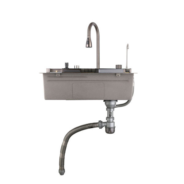 DB อ่างล้างจานเดี่ยวแบบดึงออกได้304สแตนเลสอ่างล้างจานปลาวาฬน้ำตกอ่างล้างจานผักที่มีการออกแบบให้มีรูเดียว