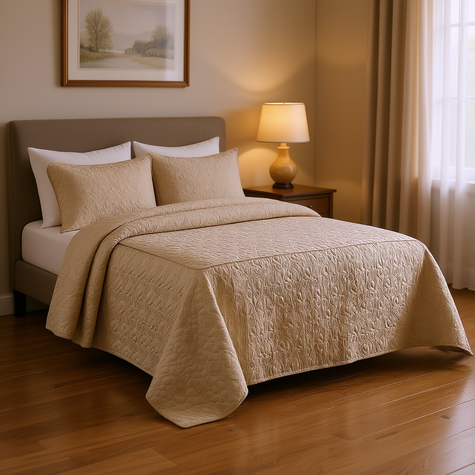 ชุดเครื่องนอนผ้านวมเย็บลายแบบแยกมุม 3 ชิ้น สีกากี รุ่นซัมเมอร์ สำหรับเตียงควีนไซส์ เหมาะสำหรับงานแต่งงาน โรงแรม ใช้ได้ทุกฤดู