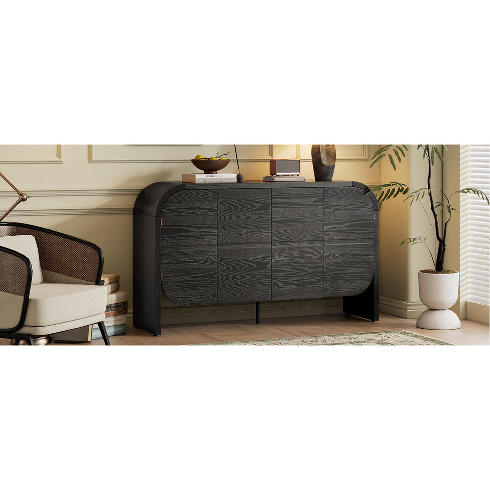 DB trexm ตู้บุฟเฟ่ต์ข้างเตียง4ประตูสไตล์ย้อนยุค, ตู้เก็บของขนาดใหญ่สำหรับบาร์ในบ้านเฟอร์นิเจอร์เน้นมุมโค้งมนสำหรับห้องนั่งเล่น