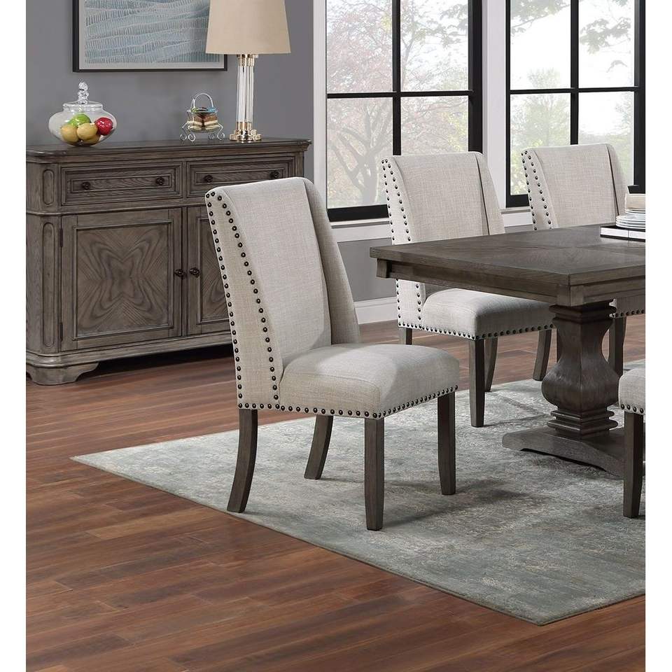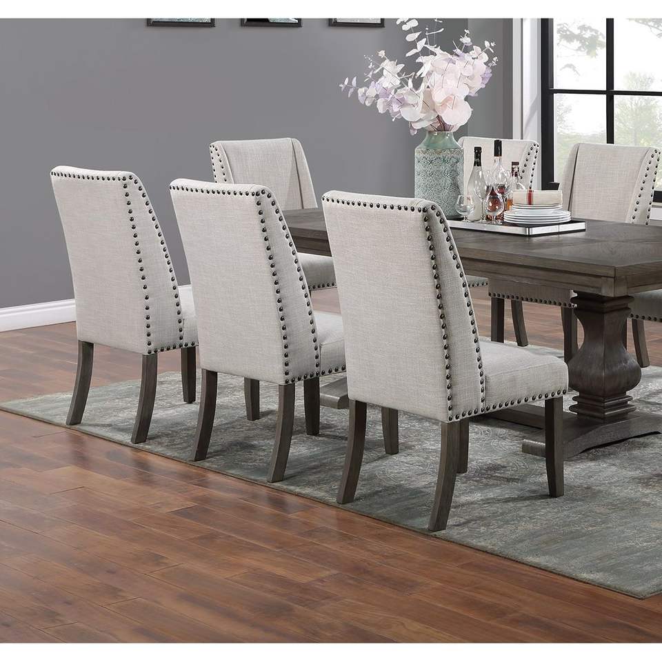 ชุดเฟอร์นิเจอร์ห้องอาหารไม้โอ๊คแบบดั้งเดิม DB 2 ตัว เก้าอี้ข้างแบบมีพนักพิงหุ้มเบาะ ดีไซน์แบบ Wingback ตกแต่งด้วยหมุดโลหะ ชุดเก้าอี้แบบเป็นทางการ 2 ตัว