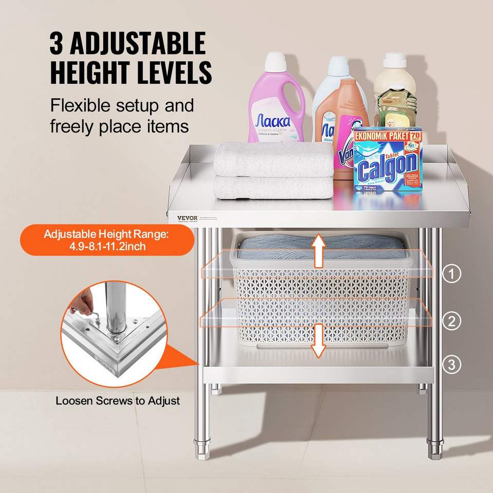 DB โต๊ะทำงานสแตนเลสขนาด24x28x26นิ้วโต๊ะทำงานหนักเชิงพาณิชย์เตรียมอาหาร
